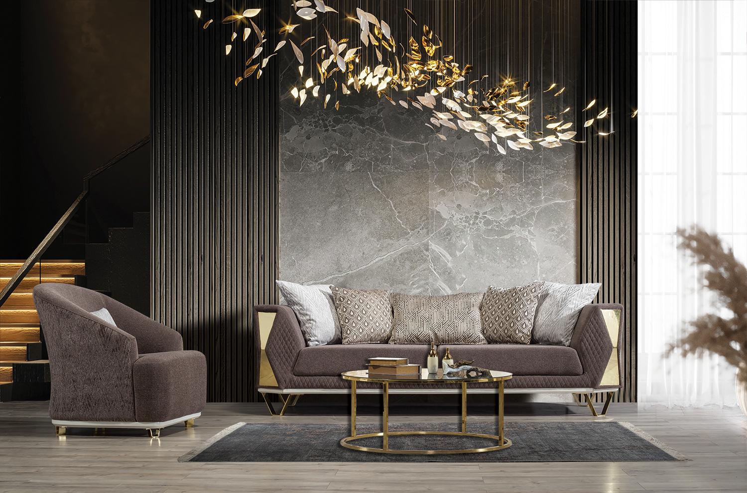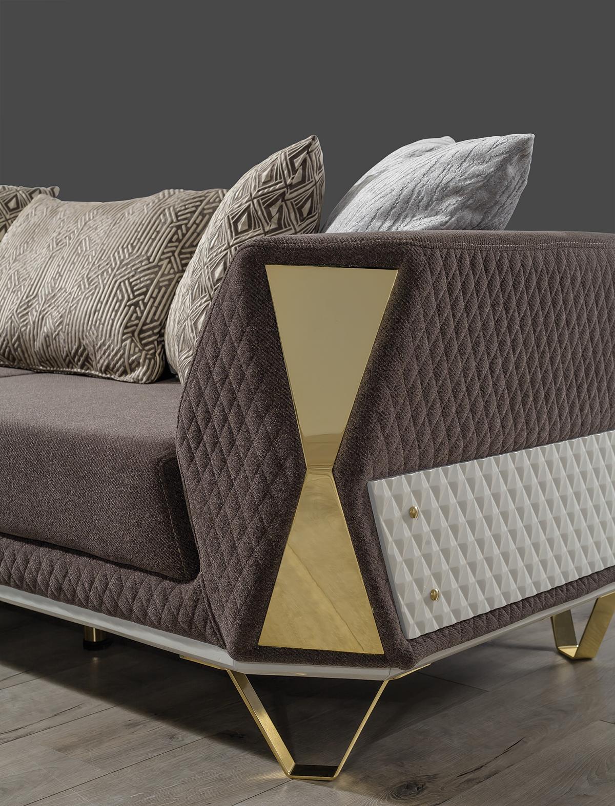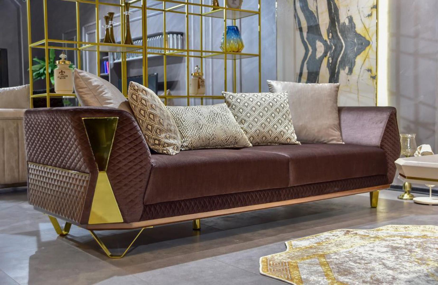 Dëse Dräisëtzer ass ideal fir all Wunnzëmmer Layout, egal ob modern oder traditionell. D'Stilvoll Textiloberfläch an de metallesche Kader vermëschen sech harmonesch fir e raffinéiert, awer zäitlose Look ze kreéieren. Dank senger universeller groer Faarf gëtt de Canapé eng ausgestrahlt Eleganz a passt nahtlos an all Dekor. Stellt Iech vir, dëse Canapé an ärem Lieblingsraum opzebauen, fir erhuelsam Momenter beim Liesen vun engem Buch oder geselleger Zeit mat Frënn a Famill ze verbréngen. Mat senge robuste Materialien an elegante Design ass dëse Canapé eng Investitioun an Qualitéit a Stil, déi sécher vill Joren hällt.