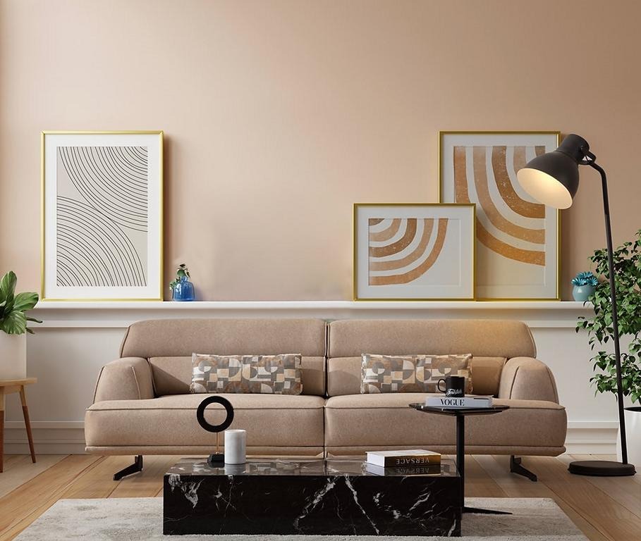 Wunnzëmmer-Komfort, béigen Dreisëtzer-Sofa, exklusiv Ausrëschtung
