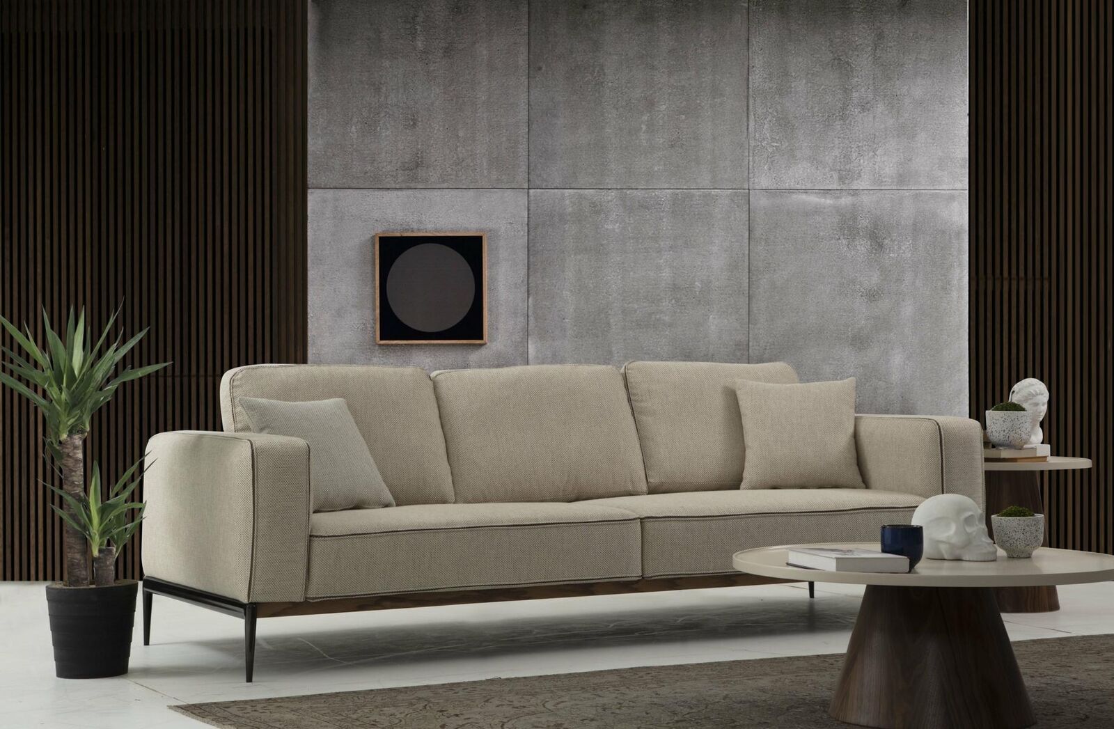 Sofa Dräisëtzer 3 Sëtzer Stoff Modern Sofaen Design Wunnzëmmer Beige