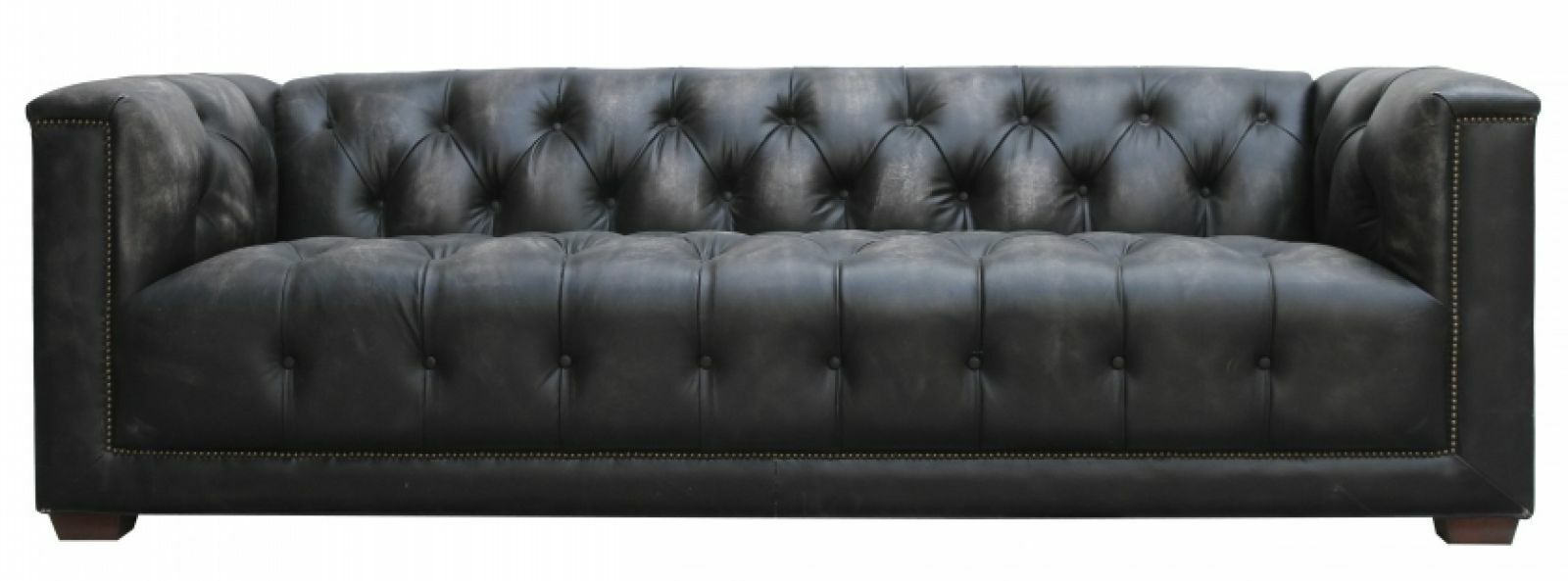 Chesterfield Vintage Schwaarz Shabby Lieder Ledersofa Canapé Sofa Canapé