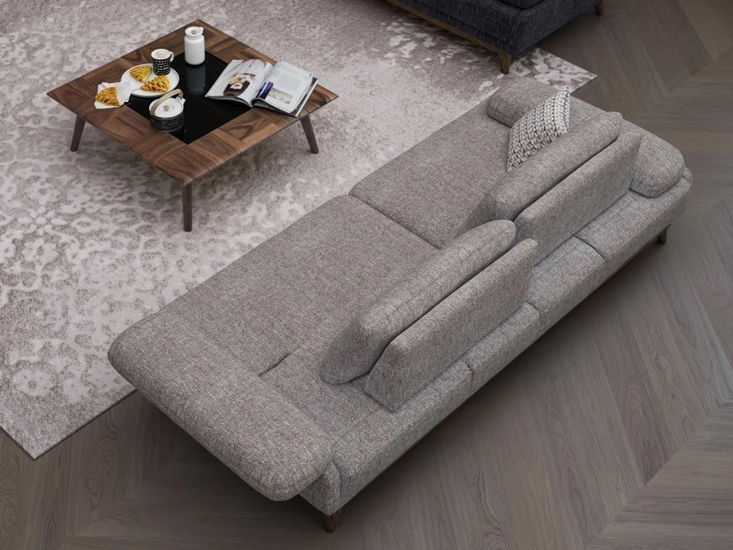 Ob Dir et als gemittlech Liesëck oder fir Frënn an Famill ze empfänken benotzt, dësen Sofa erhéicht all Erfarung duerch säi stilvollen Design a seng praktesch Funktiounen. D'Ënnerstëtzung vun der Polsterung suergt dofir, datt jiddereen sech direkt wuel fillt. Dank der breeter Sëtzfläch an déi agréabel Héicht, ass héich Komfort garantéiert egal ob als gemittlech Relaxplaz oder als stilvollen Ensembel fir sozial Zesummekünfte. Dësen 'Design Stoffpolsterméiwen Dräisëtzer Sofa' ass méi wéi just e Miwwelstéck - et ass e symboliséiert aussergewéinleche Goût an eng modern Ariichtung, déi den Zentrum vun Ärem Heem dekorativ accentuéiert.