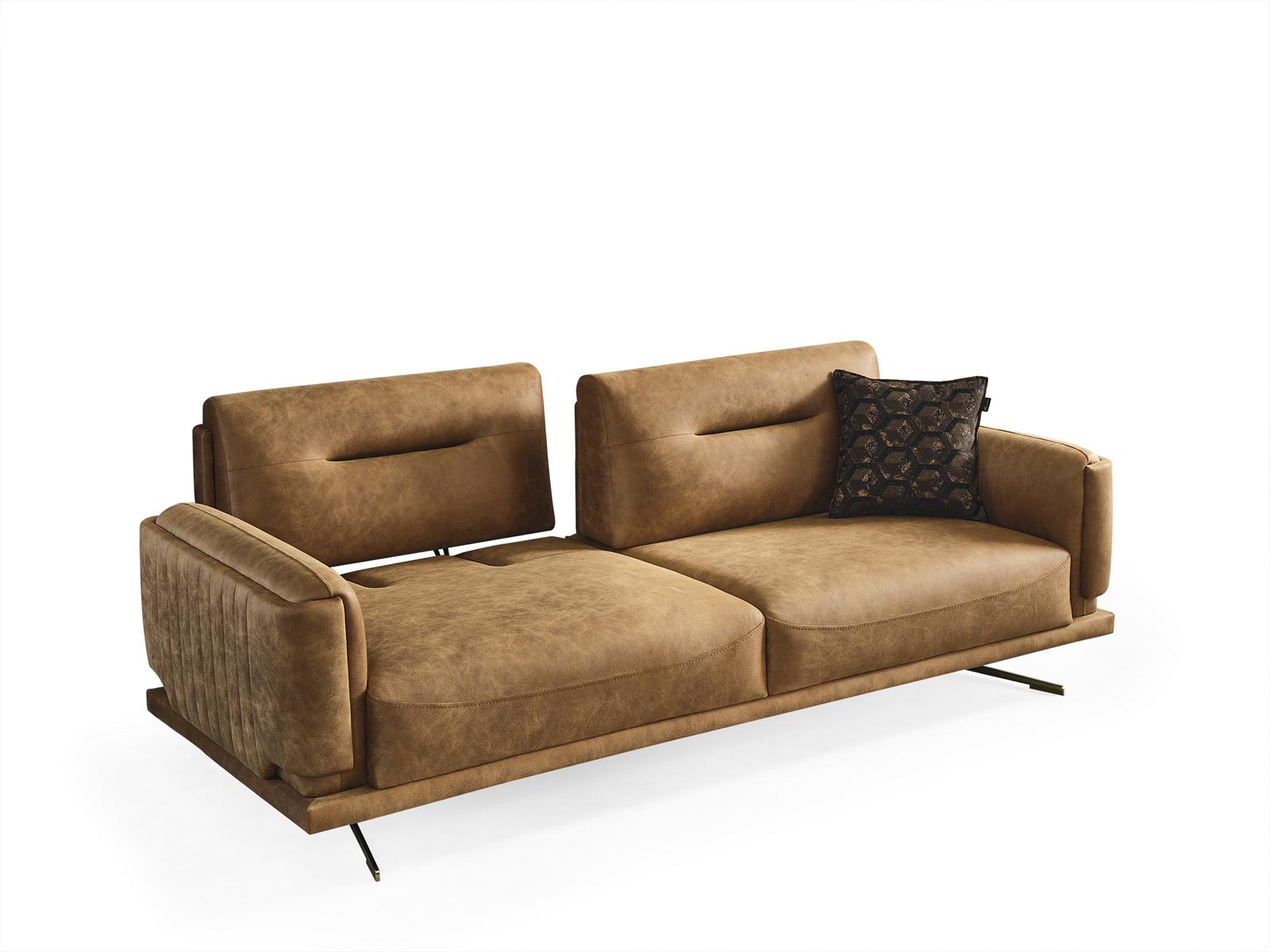 Dreisëtzer Sofa 3 Sëtzer Sofas Braun Kënschtleer Wunnzëmmer Luxus Sëtz