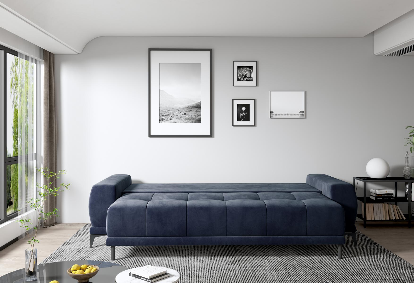 Des weidere Punkt ass d'besonnesch haltbar Innenkonstruktioun aus richtegem Holz kombinéiert mat engem Federkern, déi ugesi loscht ass fir béisn Komfort an Haltbarkeet ze garantéieren. Fir déi, déi e glowend Akzent sichen, gëtt et d'Méiglechkeet, LED Beliichtung ënner dem Sofa géint eng zousätzlech Käschte ze wielen. Mat senger modernst Architekturausstattung an usprochsvollen Design, kann dësen Sofa villsäiteg an engem Wunnzëmmer, engem Buttek oder engem modernen Büro integréiert ginn, wat en ambianter Charme garantéiert.