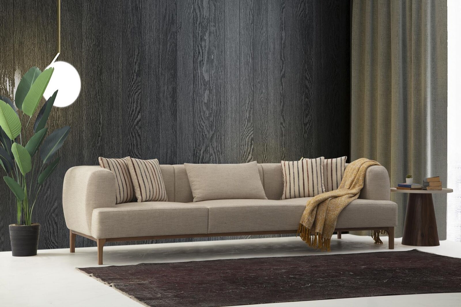 Den 'Däersëtzer Canapé 3 Sëtzer Canapéen Beige Stoff Modern Wunnzëmmer Luxus Nei' bréngt Eleganz an Komfort an all Wunnzëmmer. Mat enger Längt vun ongeféier 240 cm, enger Breet vun 96 cm an enger Héicht vun 77 cm, bitt dëse Canapé genuch Plaz fir ëm Leefegkeet an iwwerschësseg Plaz zu bidden, wann Dir Zäit mat Famill a Frënn verbréngt. D'Faarf mat engem neutralen beige Stëff garantéiert datt et sech nahtlos un all Interieur-Stil upasst, vu modernem bis zu klasseschem Dekor. D'Kombinatioun vu qualitativ héichwäertege Materialien, dorënner Holz a Stëff, suergt net nëmme fir Eleganz, mee och fir Laangliewegkeet a Stabilitéit.