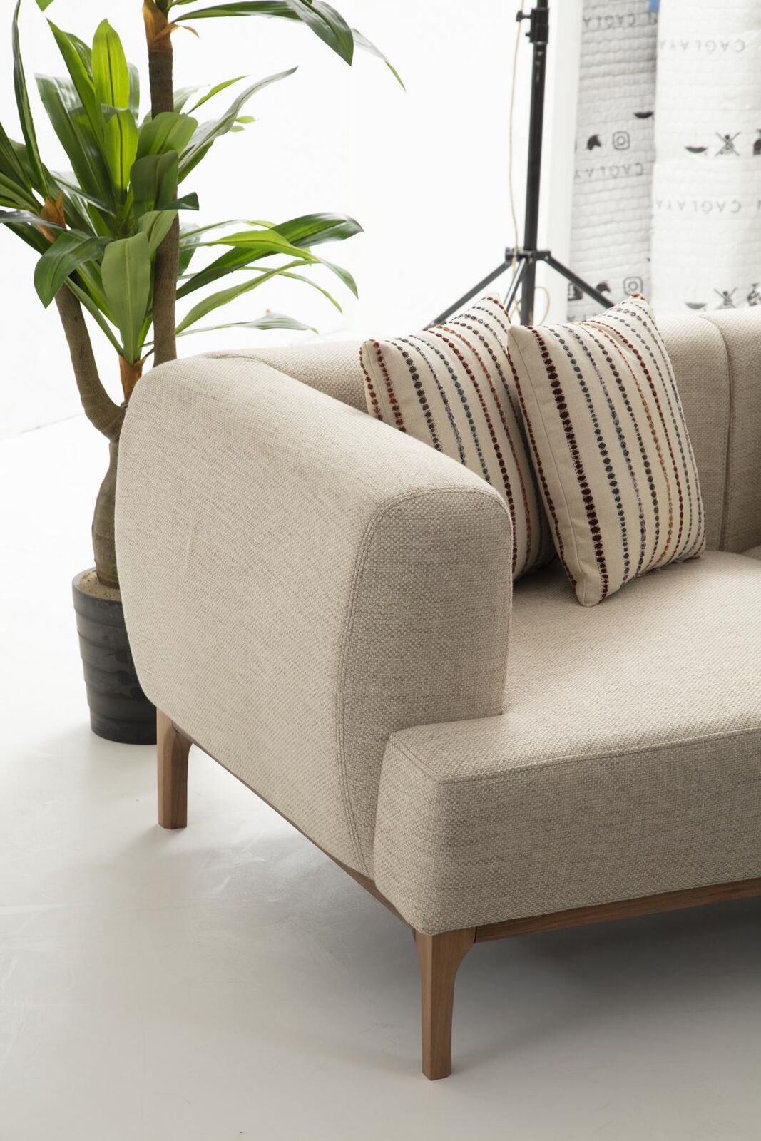 Däersëtzer Canapé 3 Sëtzer Canapéen Beige Stoff Modern Wunnzëmmer Luxus Nei