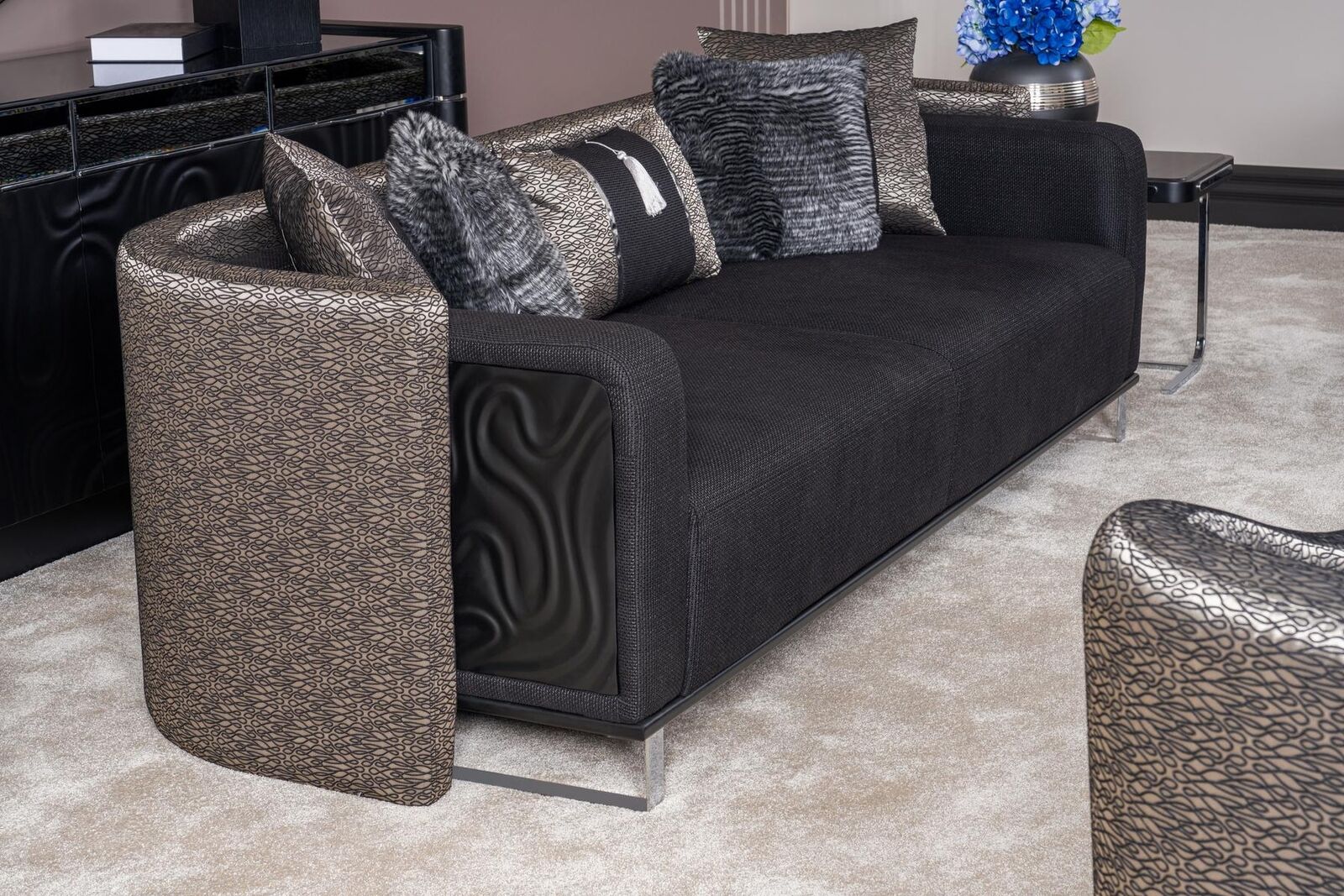 Entdeckt de Luxus vun eiser Dräisëtzer 240cm Schwaarz Luxus Couch Sofa, e Meeschterstéck aus dem Beräich vun de miwwelierten Accessoiren, dat Äert Wunnen neie Glanz verleiht. Dëst elegant Stéck ass perfekt entworf fir en ästheteschen a Komfortniveau anzebréngen, deen den Erwaardunge vun de prestigiéiststen Haiser gerecht gëtt. Mat enger Gesamtgréisst vun ca. 240 x 100 x 73 cm bidd dës Couch genuch Plaz fir Famill, Frënn oder als Luxus Ergänzung fir Ären Alldag. D’Kombinatioun vun héichwäertegem Holz an Textilmaterial garantéiert Robustheet ouni Kompromësser beim Stylesinn. Anzeschätzen ass och d’Lënsendignit vun der Faarf, déi wéi ofgebilt de klasseschen a moderne Geschmaach vereenegt.