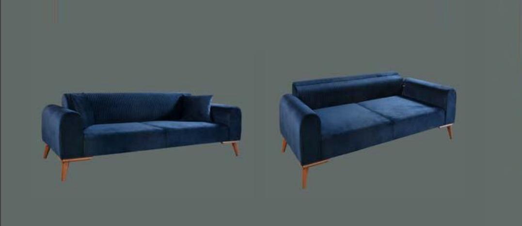 Ideal fir all modern Heem, verschéinert dës Dräisëtzer Couch de Raum, egal ob an der Stuff, am Wunnzëmmer oder an engem Bürosberäich. Si ass déi perfekt Wiel, fir e "gemittlechen Ecker" ze kreéieren, wou Bobommell wäert emol méi schwiereg ze vergi keinen. D'Zäitlose Design kombinéiert mat der intensiver bloer Faarf suergt dofir, datt dës Sammlung vu Miwwel ëmmer e Mëttelpunkt wäert sinn. Egal ob Dir eng Plaz fir Entspanung, Liesmomenter oder gemittlech Gespréicher mat Frënn an der Famill sichs, dës Samett-Couch passt zu all Geleeënheet. Verwandelt Äert Heem mat där Elegante blo Dräisëtzer Sofa, déi Ären Dekor en Touch vu Klassekeet an modernem Charme gëtt.
