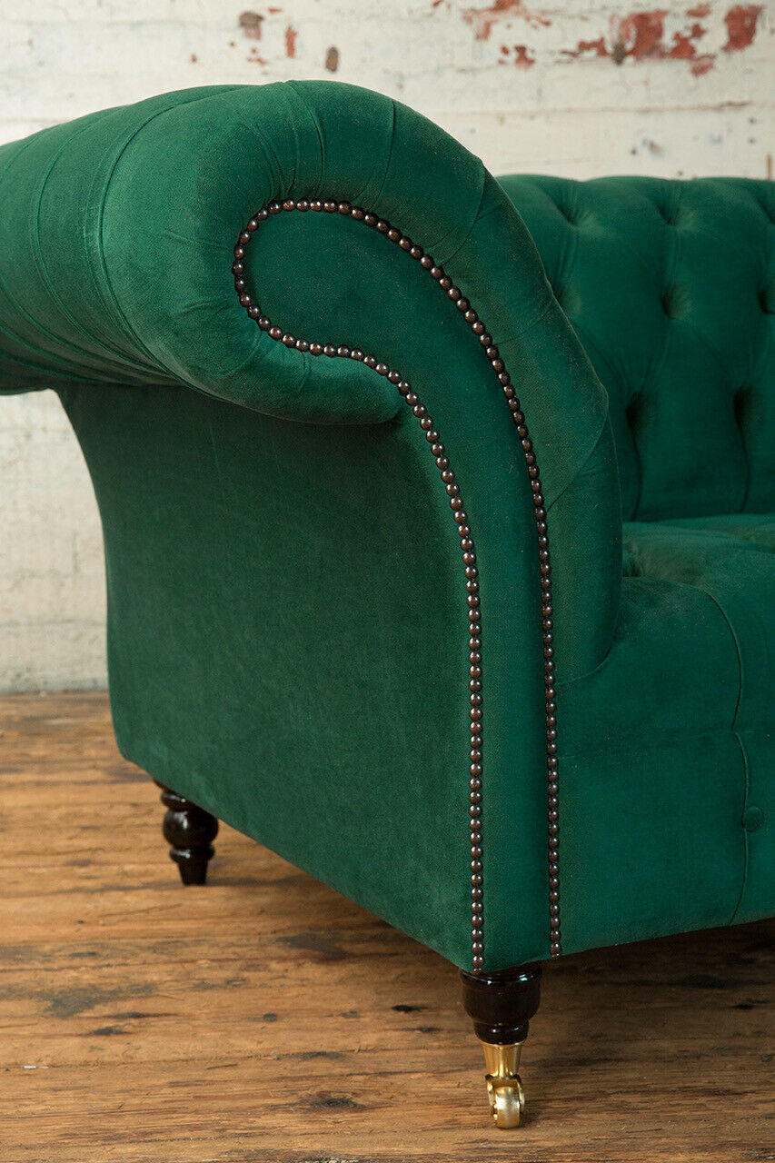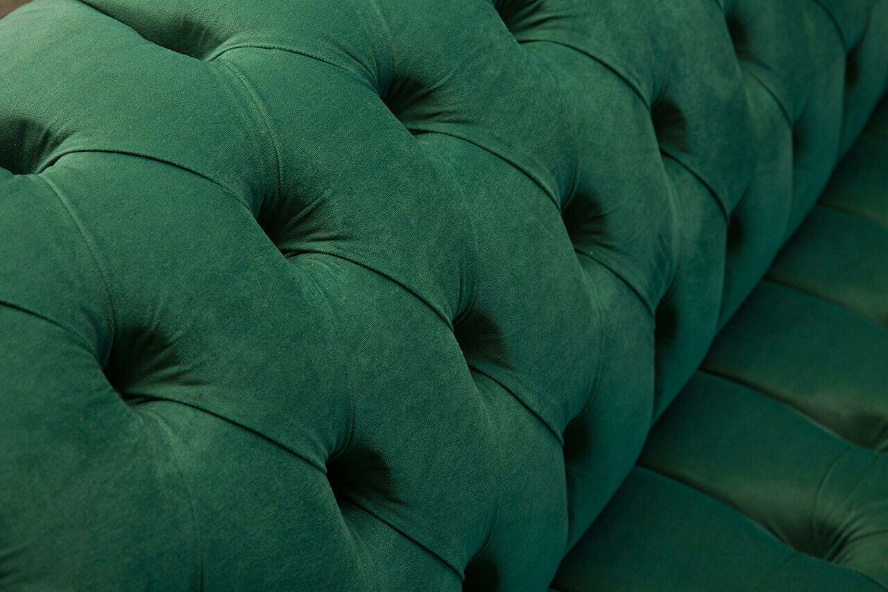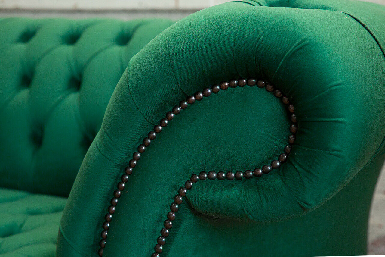 Klassesch Chesterfield Couch 3 Sëtzer Sofa Couch Samt Lieder Design grouss gréng nei