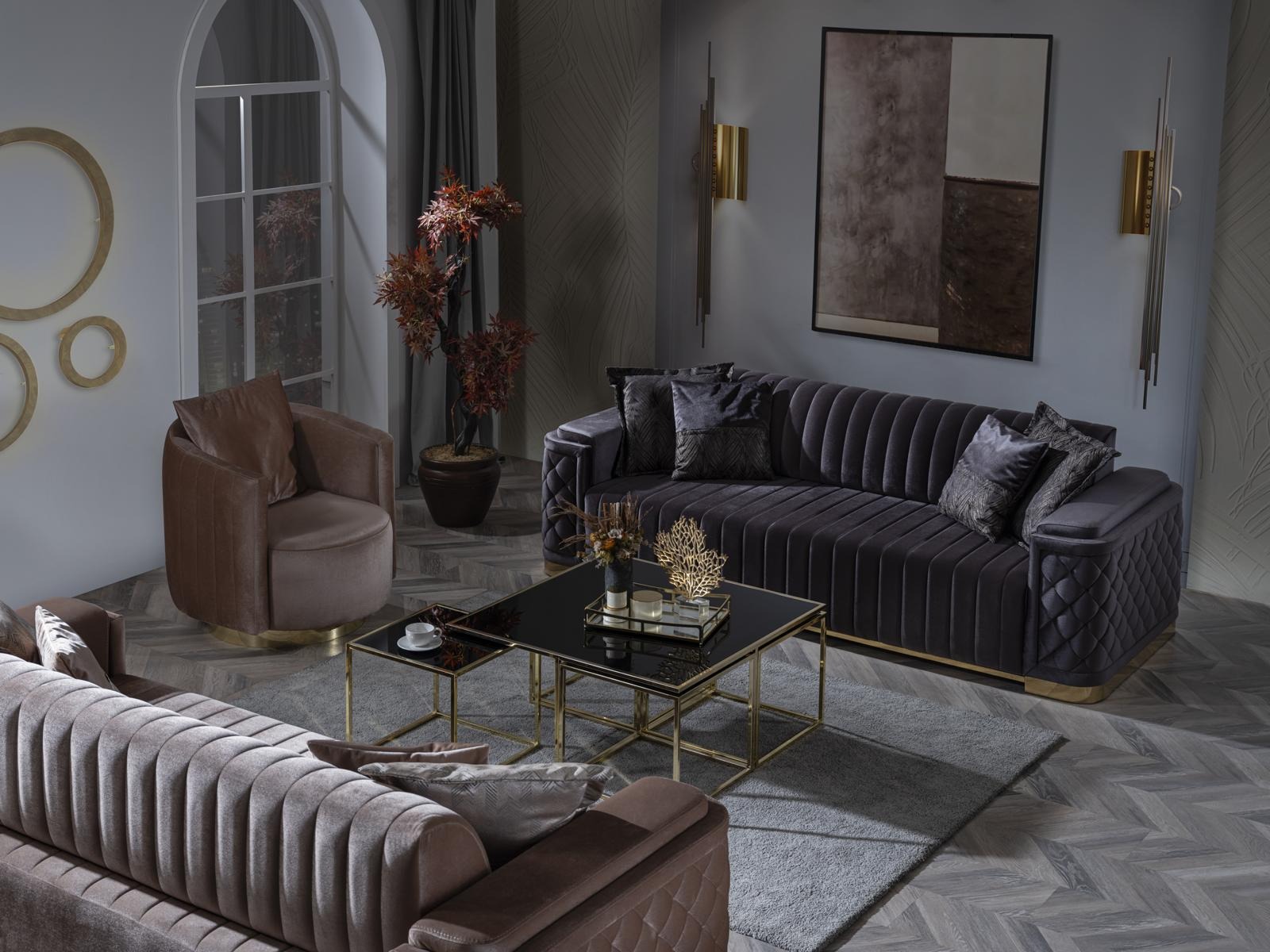 Dëst Luxussëtzgefill gëtt duerch seng optimal Sëtzhéicht vu 44 cm an d'Sëtzdéift vun 54 cm garantéiert, déi Komfort bei all Interaktioun verspriechen. D'Faarwen kënnen de perséinlechen Interieurauswiel ugepasst ginn, sou datt dësen Canapé eng ideal Wiel fir all Wunnzëmmerei ass. Ob Dir et als Mëttelpunkt an Ärem Wunnraum benotzt oder als e gemittleche Plaz fir z'entaléieren no engem laangen Dag, dës Sofa bréngt ëmmer eppes Besonnesches a sech. Bestellt elo a bréngt eng Kombinatioun vu Luxus an Zweckméissegkeet an Äert Heem.