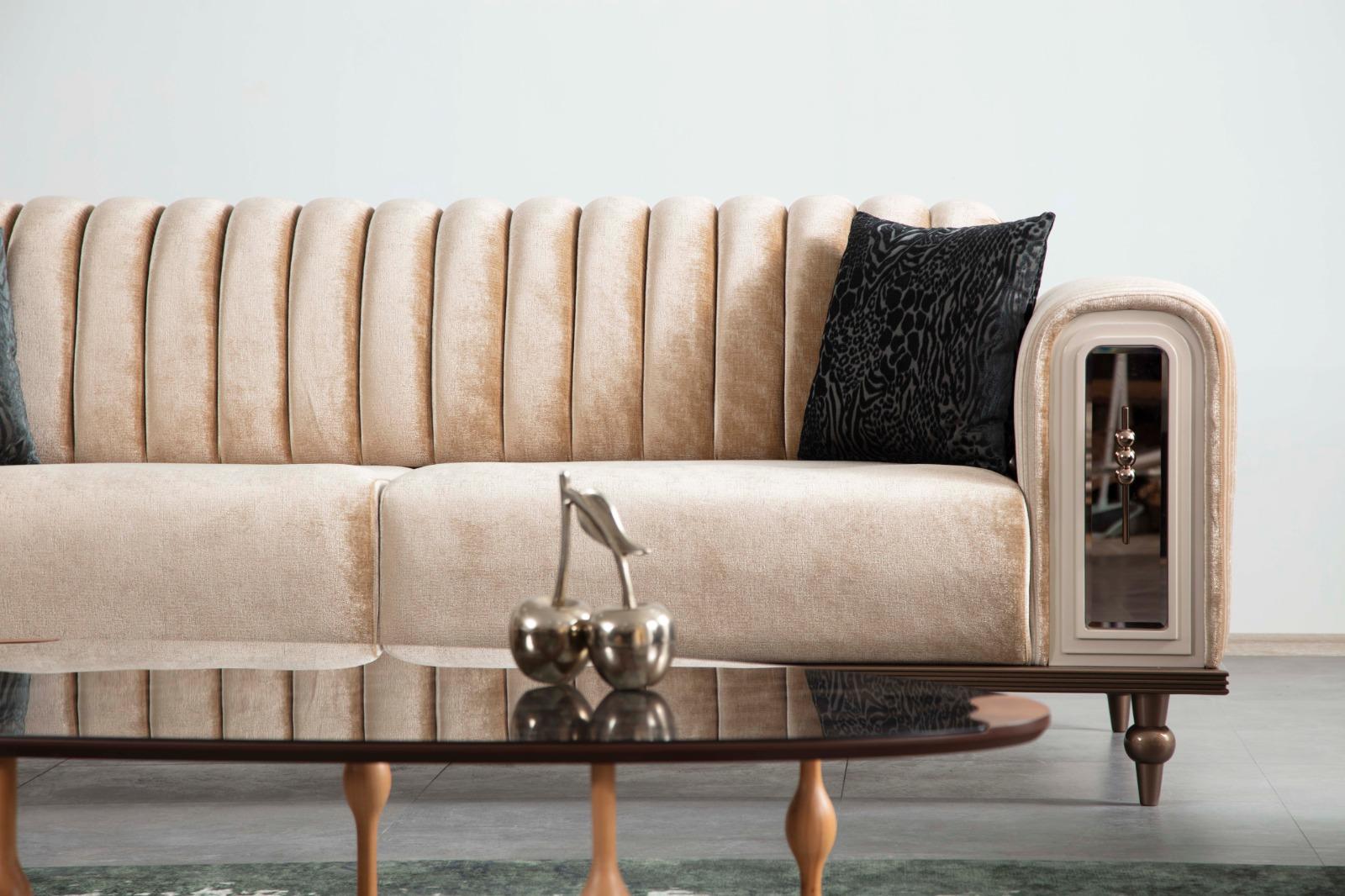 Luxus Bank Sofa Canapé Beige Wunnzëmmer Kanzlei Textil Canapéen