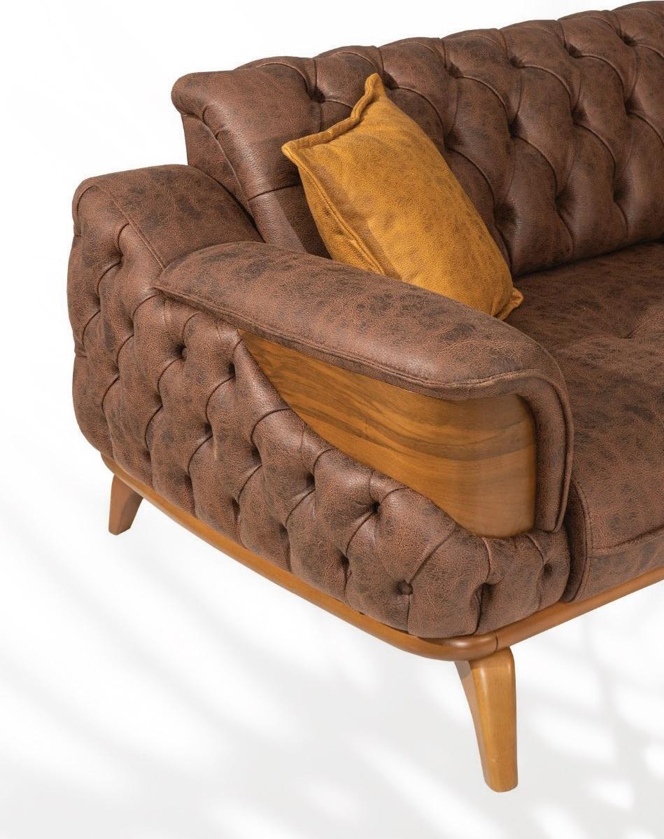 De 'Luxus dräisëtzegen Chesterfield Canapé Miwwelen Canapéen Brong Sofas Lieder Gepolstert Neit' ass eng exzellent Optioun fir all déi, déi ee klassesche Stil mat moderner Eleganz kombinéiere wëllen. Dëst exquisite Stéck ass ëmfaassend entworf mat enger Dimensioun vu 230 cm Längt, 90 cm Héicht, an 90 cm Breet, perfekt fir a Wuert ze gesinn. Mat enger Sëtzhéicht vun 42 cm an enger Sëtzdéift vun 58 cm, bitt dëse Canapé optimal Komfort fir déi schéinste Momenter. Aus Holz a feinem Lieder hiergestallt, garantéiert dëst Miwwelstéck net nëmmen e laangliewege Gebrauch, mee och en Timing an Top-Qualitéit a punkto Stil. Faarwe gi wéi ofgebilt ugebueden, awer aner Faarwen si méiglech op Ufro, fir perfekt Ärem Stot säi Dekor unzepassen.