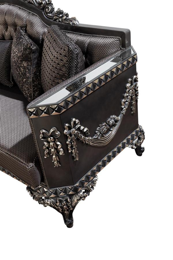Dëse Sofa ass perfekt fir déi, déi eng stilvoll Ambiance an hirem Wunngemaach wëllen. D'Faarf, déi wéi ofgebilt ass, füügt sech nahtlos an all Zëmmertyp un, wärend de klassesche Chesterfield-Design e Gefill vun Traditioun an Eleganz mat sech bréngt. Egal ob et fir Gästeaufnahme bei Feierdeeg oder als e Relax-Plaz no engem laangen Aarbechtsdag ass, dëst Sofa bitt en optimalen Mix aus Komfort an Stil. Verkierperen Sie de perfekte Mësch vu Funktionalitéit a Visibilitéit mat eisem Luxus Dräi-Sëtzer Design Sofa.