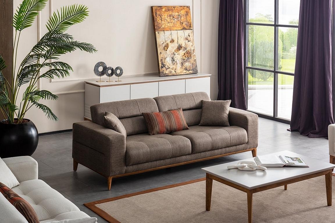Den 'Luxus Wohnzimmer Canapé dräisëtzeger Couch Moderne Design Polstersofas' ass en onentbehrlechen Mëttelpunkt fir all modernes Wunnzëmmer. Mat senge Moossen vun ongeféier 225 x 90 x 85 cm bitt dëse Couch genuch Plaz fir bequem ze sëtzen an ze entspanen. D'Kombinatioun aus héichwäertegen Holz an haltbarem Textil garantéiert net nëmmen eng laang Liewensdauer, mee och en herausragenden Komfortdat natierlecht a stilvollt Erscheinungsbild ënnersträicht. Dësen tridimensionalen Sofa ass an der Faarf wéi ofgebilt verfügbar, mee aner Faarwen kënnen no Ufro geliwwert ginn, fir Är perséinlech Ariichtung ideal ofzestëmmen.