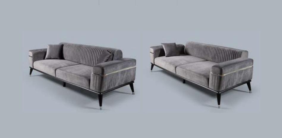 Den Luxus Wunnzëmmer Canapé Grommel Canapéën Sofa ass d'ideale Miwwelstéck fir all Deckoratiouns-Enthusiast. Mat senger Eleganz an sengem modernen Design passt dëse Canapé perfekt an all Stil vun Ariichtung. D'Moossen si bei ongeféier 234 x 97 x 80 cm, wat en optimalen Komfort suerge mécht, wärend d'Héicht vun 80 cm an d'Sëtzhéicht vun 44 cm garantéieren, datt Dir bequem sëtzt. Dëse Canapé gëtt a feinster Textil mat Holzfinissagen offréiert, déi eng harmonesch an raffinéiert Atmosphäre an Äert Heem bréngen.