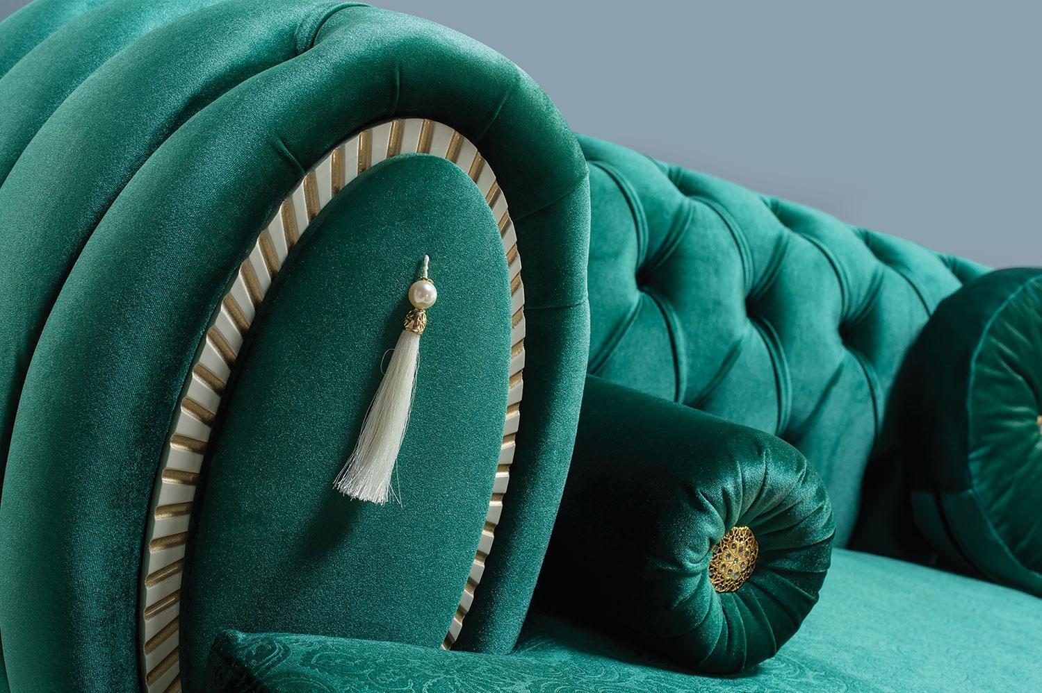 Moderne 3-sëtzer Sofa Gréng Sofa Luxuriéis Wunnzëmmerscouch Holzgestell