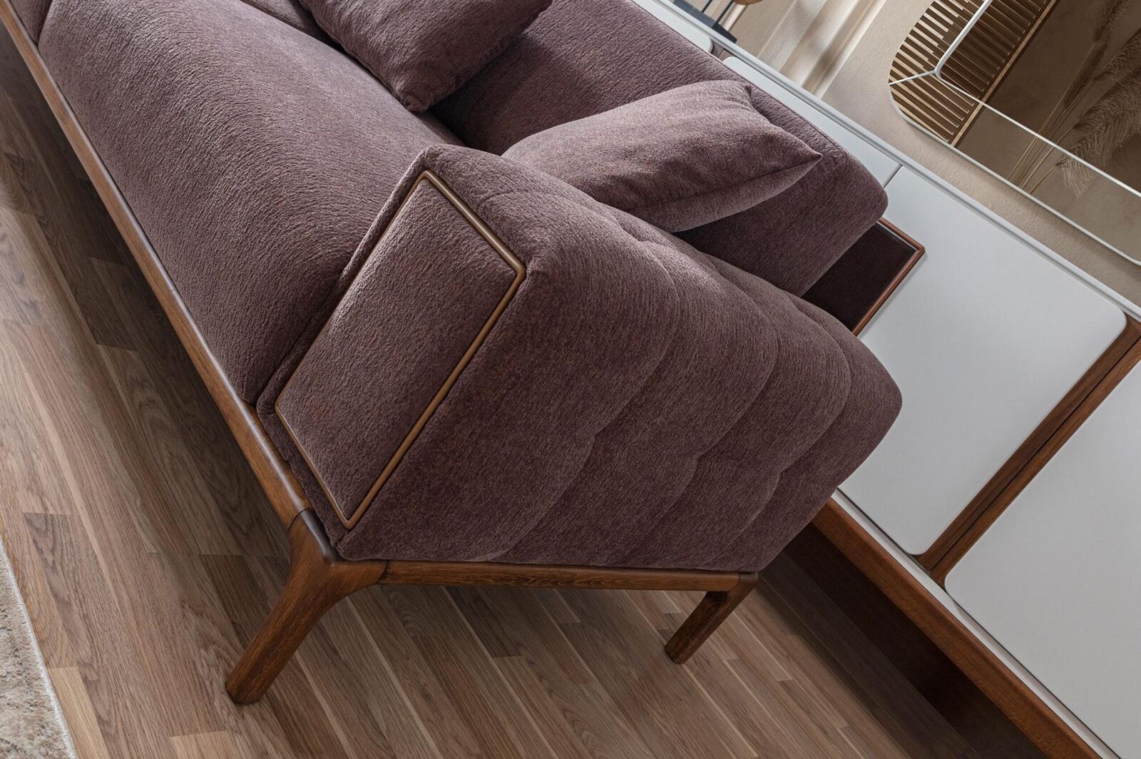 Dëst Luxus Sofa ass net nëmme fir déi Alldeeg, mä och ideal fir speziell Geleeënheeten, well et Frëndlechkeet an Gemütlechkeet an ärt Doheem bréngt. Stellt et an ärt Wunnzëmmer oder eng entspaanend Lounge-Zone an schaffen e gemitterleche Beräich fir Ënnerhalung oder roueg Momenter mat engem Buch oder Film. Dank senger eleganter an nachisteger Ästhetik ergänzt dëst Sofa souwuel modern wéi och traditionell Dekoratiounsstiler, wat et zu enger versatile Ergänzung fir all Heem mécht. Loosst Iech inspiréieren a kreéiert eng Atmosphär, déi Glécklechkeet an Entspanung fir Iech a Är Léifsten ervir bréngt.
