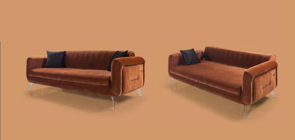 Orange Design Canapé Sofa Samt Dräisëtzer Luxus Miwwelen Stoff Textil