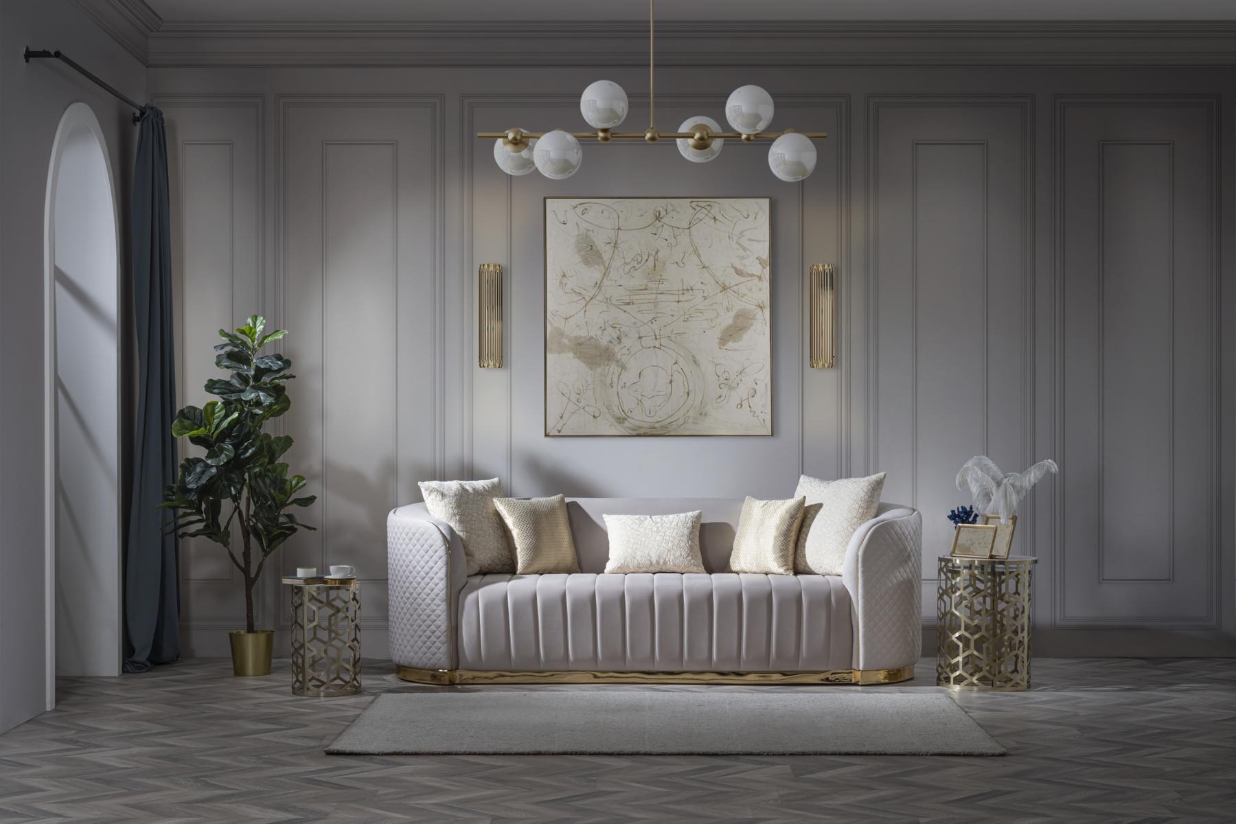 Den Oval Canapé Drësëtzeger Canapéë ass déi perfekt Ergänzung fir all raffinéiert Heemariichtung. Mat senge Maßen vun ca. 247 x 94 x 81 cm bitt dësen Sofa genuch Plaz fir bequem dräi Persounen. D'Kombinatioun vu qualitativ héichwäertegem Holz an edlem Textil suergt fir e luxuriéise Look a robusten Design, deen Iech iwwer Joren duerch Flexibilitéit an Komfort begleet. D'Sëtzhéicht vu ca. 44 cm an d'Sëtztiefe vun ca. 54 cm maachen dëse Canapé ideal fir eng entspaant a komfortabel Sëtzpositioun. Verfügbar an engem elegante wäissen Design, kann dëse Sofa och a verschiddenen anere Faarwen personaliséiert ginn, fir sech perfekt un Är existent Dekoratioun unzepassen.