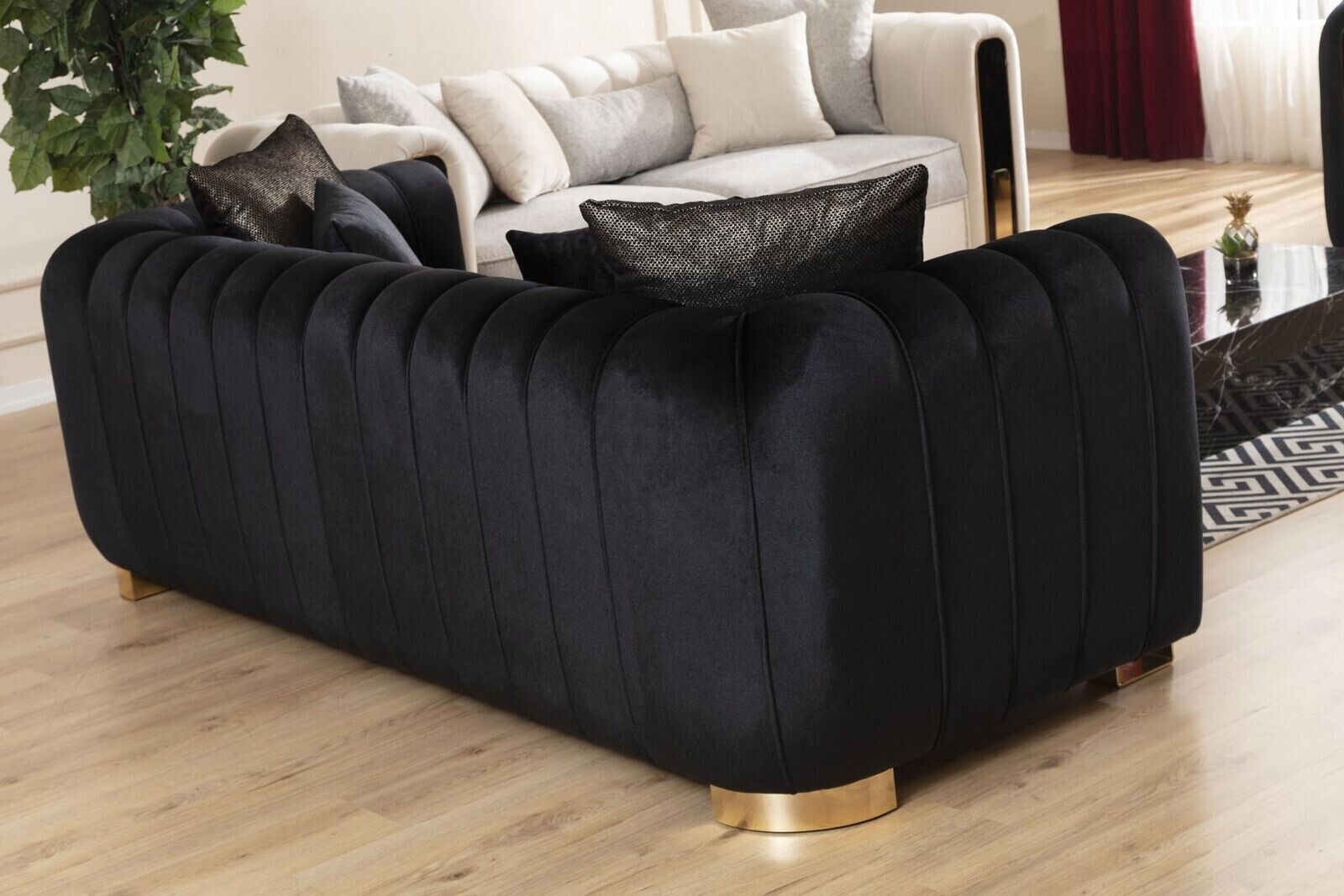 Canapé, Dräisëtzer, Modern, Stoff, Schwaarz, Canapéen, Design, Wunnzëmmer