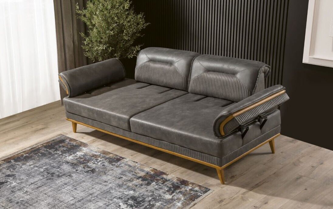 De grau Faarw vum Canapé passt perfekt an all Interieurdesign, an déngt als eng elegant Ergänzung zu all Dekoratioun. Ob Dir e Familljeowend plangt oder einfach en entspanenden Nomëtteg wëllt genéissen, dëse Canapé ass de perfekte Mëttelpunkt. En ass ideal fir Liesen, Gäert empfänken oder einfach fir d'Féiss an d'Musek ze relaxen. Säi robuiste Bau garantéiert eng beandrockend Ënnerstëtzung, während den douce Stoff eng agreabel Tastgefill bitt. Investéiert an Qualitéit an e gefleegten Look fir Äert Wunnzëmmer mat dësem prächtegen Dräisëtzer Canapé.
