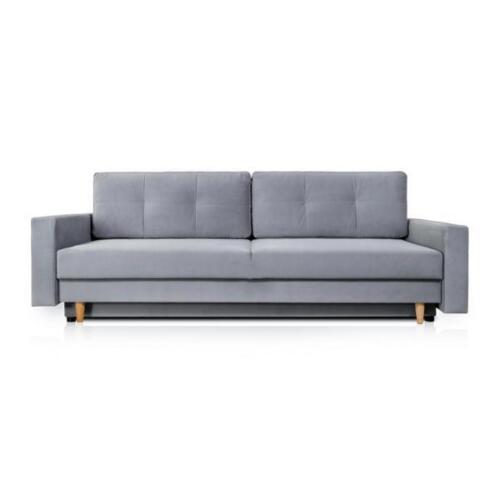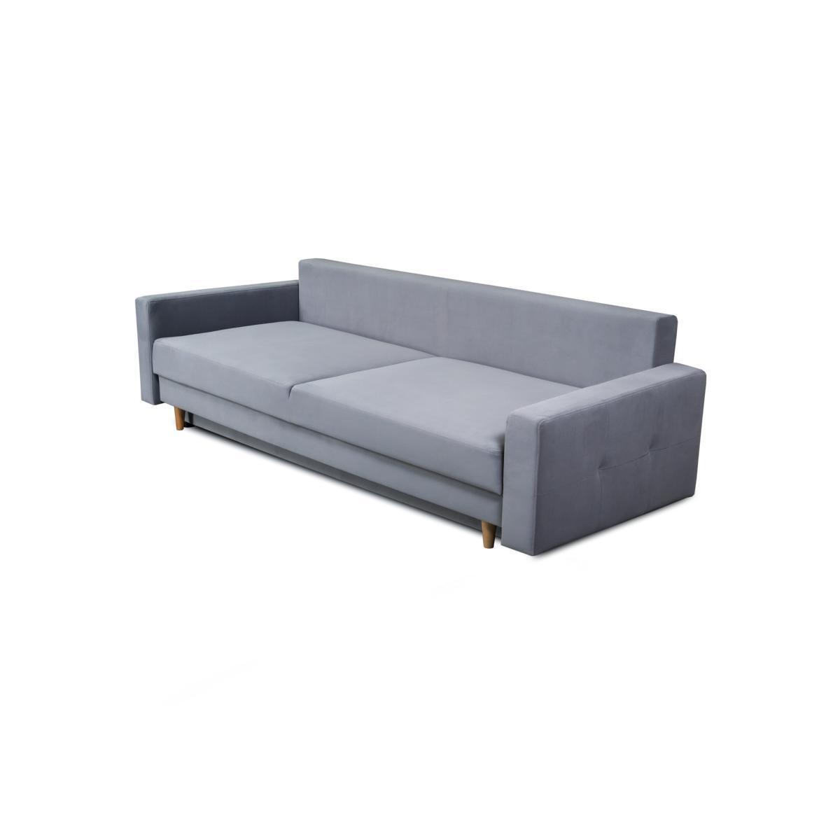 Komfortabelt a funktionellt ausklapps 3-Platzen-Sofa an hellgroer Faarf am moderne Stil.