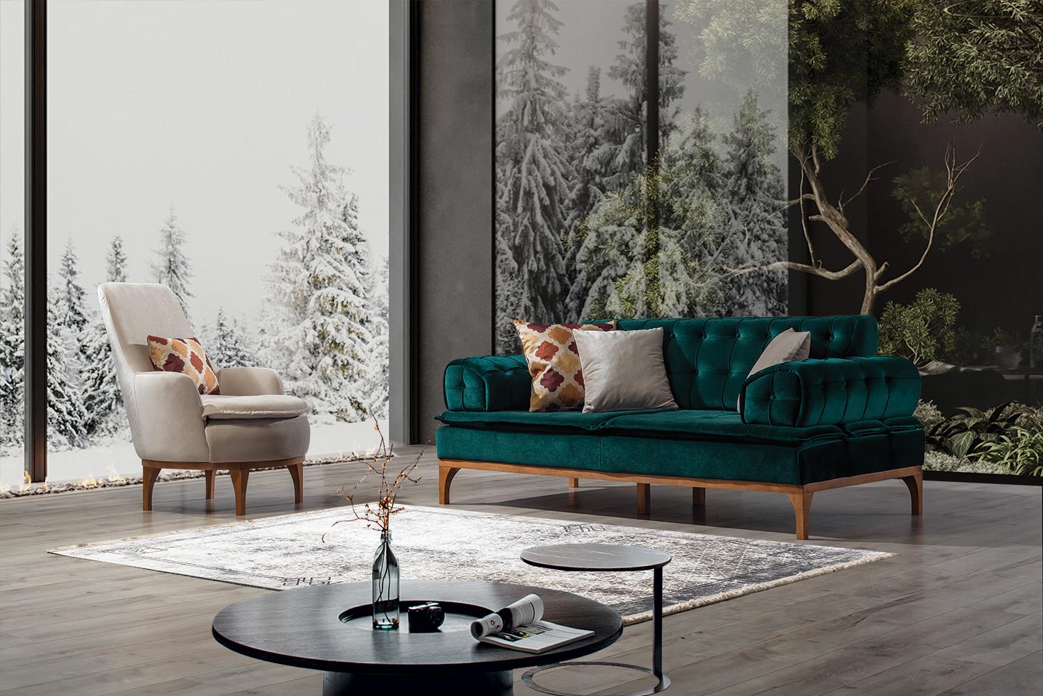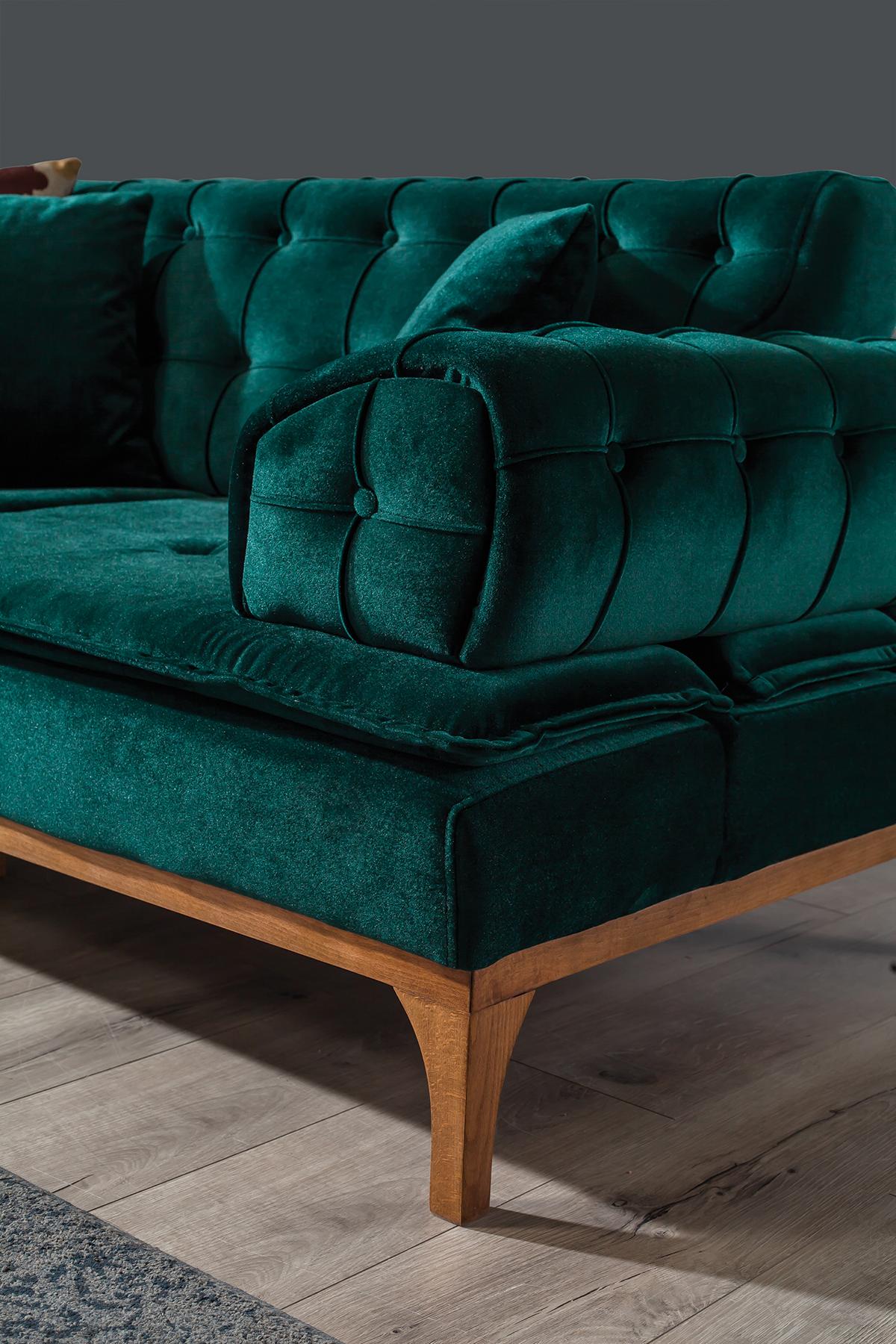 Dëse Sofa prächt sech duerch seng bemierkenswäert Sëtzhéicht vun ca. 44 cm an Sëtzdéift vun ca. 56 cm, wat optimal Komfort garantéiert. Perfekt fir eng stilvoll Stiwwercher an d'Lieszëmmer oder als zentraalt Element am Living. Mat sengem raffinéiert ausgesichte Faarwton vun Nei gréng passt dësen Stéck perfekt a modern, minimalistesch wéi och klassesch Innenarchitektur. Ideal fir relax Momenter, oder als Usprochpunkt bei sozialen Eventer, bidd dësen Sofa en hervorragenden Mix aus Komfort an Design.