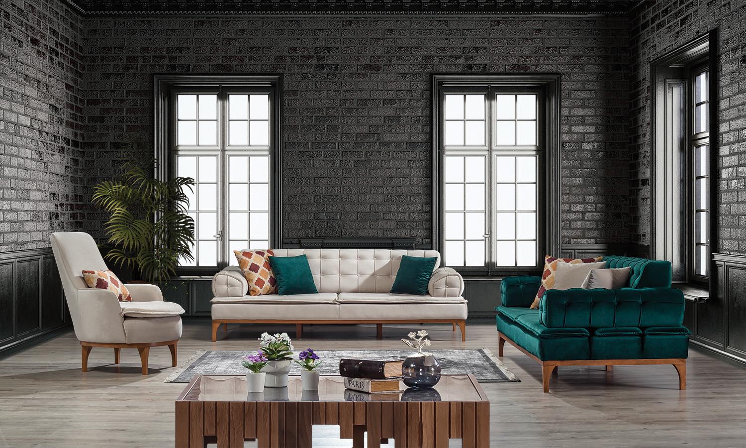 Luxus Sofa 3 Sëtzer Sofas Sëtz Stoff Design Miwwelen Stil Textil Nei gréng
