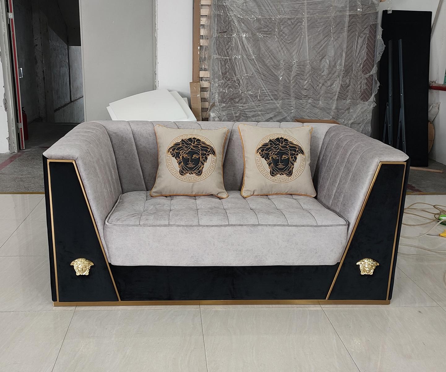 Luxus Sofa 2-Sëtzer Miwwelen Design Polster schwaarz Textil Samt Sofas Couchen