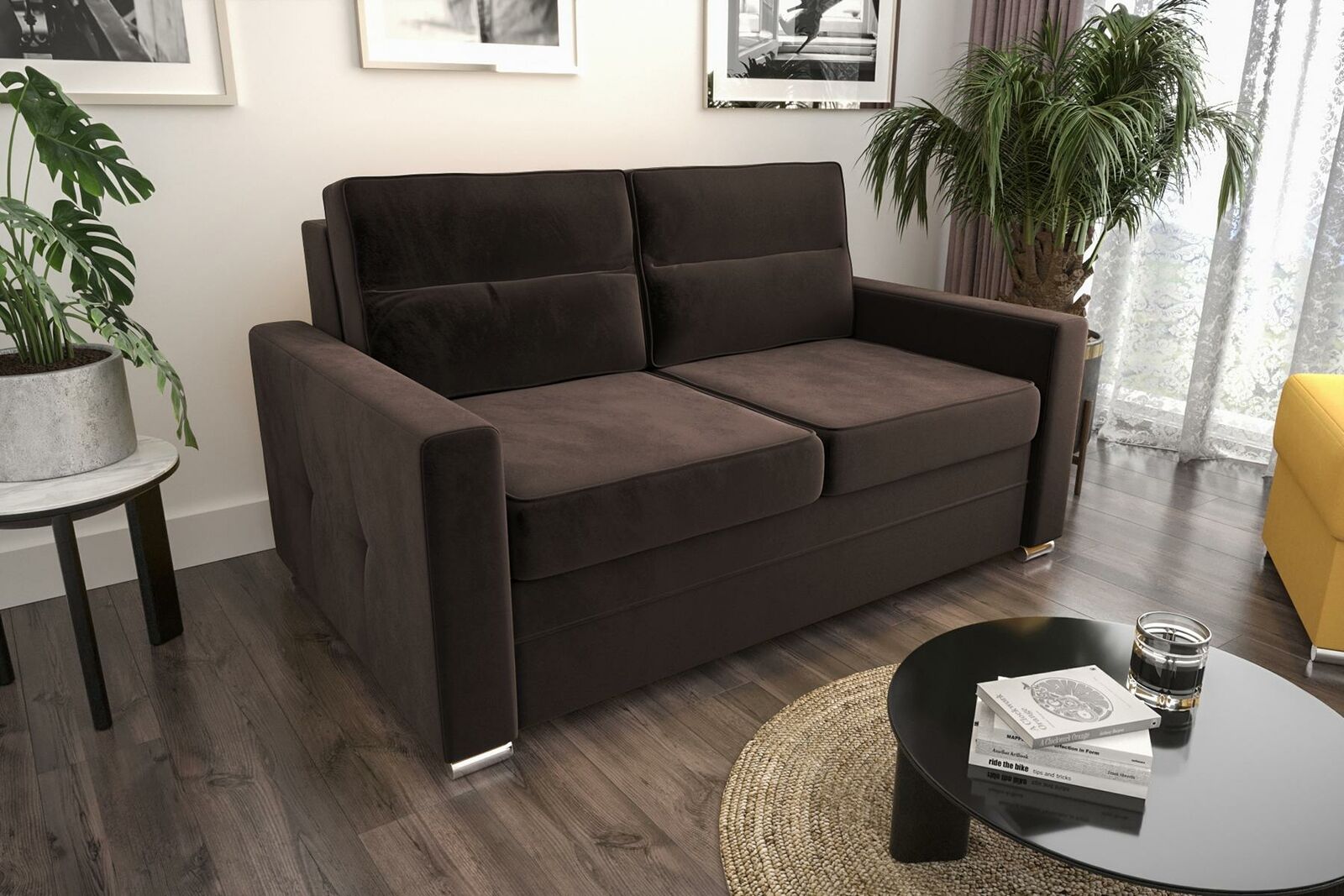 D'Qualitéit vum Innengefill aus richtegem Holz a Federkern garantéiert eng laang Liewensdauer an héije Komfort. Eng optional Ënnerbuedem LED Beliichtung ka fir nëmme 99,00 EUR bäigefüügt ginn, wat eng elegant Atmosphär schaaft. Dës Schlofsofa ass perfekt fir Iwwernuechtungsbesicher oder einfach fir sech selwer e Moment vu Räscht zu Gonschten ze leeschten. Mat enger Sëtzhéicht vu ca. 42 cm bitt si optimal Entspanung a Komfort, wärend d'Breet a Sëtzdéift genuch Plaz fir e gemittlechen Owend bidden. Maacht dës funktionell an stilvoll Schlofsofa zum Highlight vun Ärem Heem.