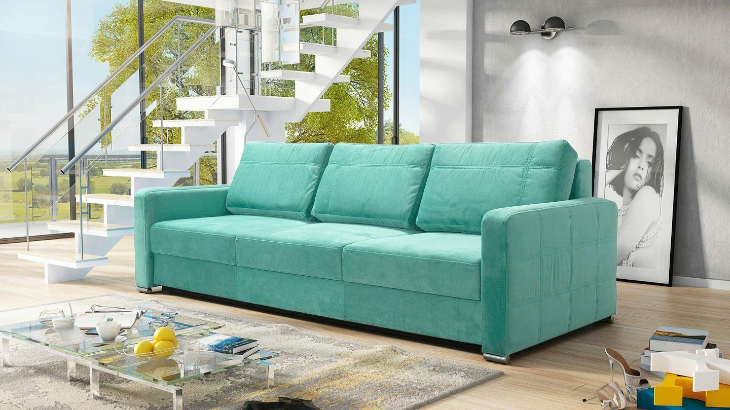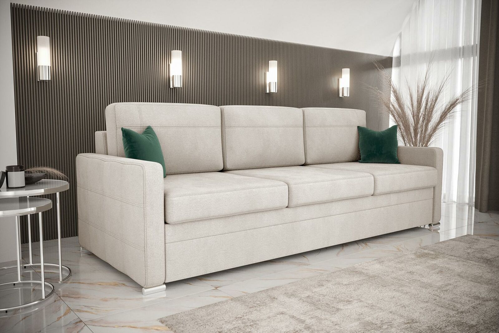 Den Schlofsofa Sofaen Kapp Textil Canapé Bett Sofa Schaf Couch Polster Miwwelen Stoff ass eng elegant a komfortabel Léisung fir Ären Heem, déi Funktionalitéit a Stil kombinéiert. Mat sengen Dimensiounen vun 230 x 95 x 82 cm bitt dëse 3-Sëtzer Sofa