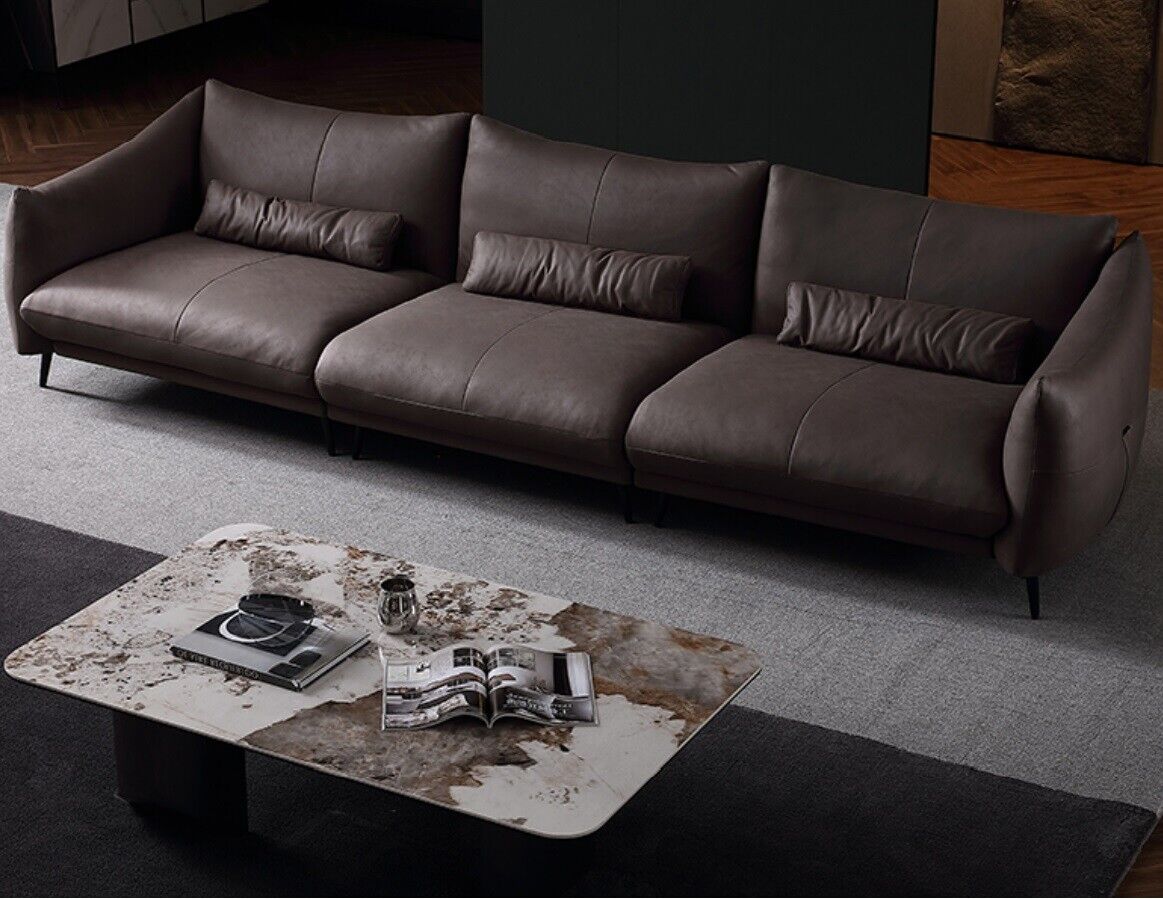 Den 'Designer Canapé Sofa Polsterstoff Italienesch Miwwelen Sofa 4 Sëtzer' bitt eng perfekt Kombinatioun vun Eleganz an Komfort. Mat hire präzise Miessunge vun ca. 260 x 91 x 76 cm kënnt dës Zopp am léiwe Design, dee jidder modernen Wohnbereich kompletéiert. D'Längt vun ca. 260 cm an déi optimal Sëtzhéicht vun ca. 43 cm suergen fir eng bequeem Sëtzpositioun fir bis zu véier Personen. De Sofa huet eng elegant Kombinatioun aus Holz an Konschtlieder, dat strapazéierfäheg an einfach ze pflegen ass, wat déi ideal Wahl ass fir aktiven Haushalt a beschäftegt Liewensstil.
