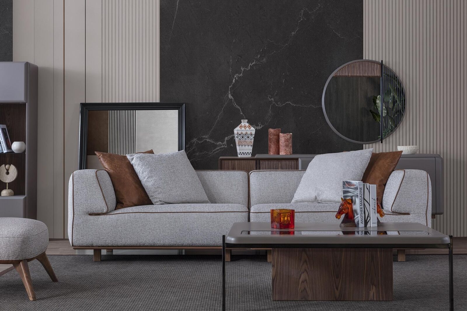Mat engem gemittleche Sëtzhéicht vun ca. 42 cm an enger Sëtzdéift vun ca. 64 cm, ass dësen Design perfekt fir entspaannte Momenter no engem laangen Dag. Ofhängeg vun de perséinleche Besoinen an Dekorerziler kënnen och aner Faarwen op Ufro geliwwert ginn, fir de Sofa nahtlos an ären existente Wunnraum ze integréieren. De 'Sofa 4 Sëtz Design' eigent sech ideal fir Gemittlechkeetsmäerder wéi Filmerowender oder Gesiess mat de Kanner, an e bréngt e Luxus-Touch an all Heem.