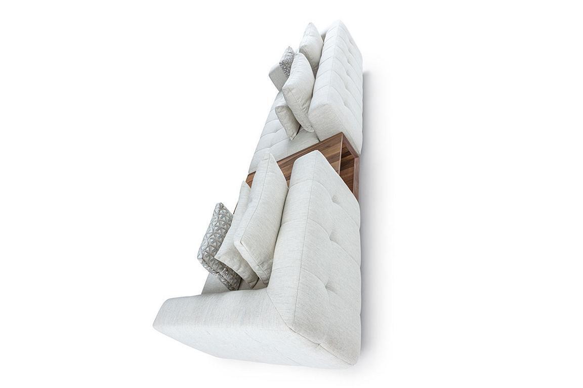 Dësen Designer Canapé ass ideal fir gréisser Raim, wou säin raffinéiert Design wierklech strale kann. Säi nétutralen Look mécht et einfach, en an all eenzel Dekorationsstil anzebannen. Egal ob Dir Iech e rouegt Ofschloss vum Dag wënscht oder en elegante Kader fir Gäscht ubidden wëllt, dëst Miwwelstéck iwwerzeegt an all Hisiicht. Ausserdeem kann dëse Sofa a verschiddenen anere Faarwen op Ufro zougänglech gemaach ginn, sou datt Dir Äre perséinleche Goût perfekt spigeléiert. Entdeckt e vollstännegt Gefill vu Gläichgewiicht a Glanz an Ärem Heem mat dësem exklusive Wäissen Véiersëtzer Modern Polstersofa.