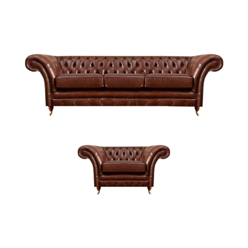 Brong Set 2dëlg Dräisëtzer Canapé Lieder Fautel Chesterfield Wunnzëmmer
