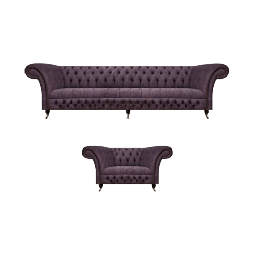Entdeckt de Luxus vun der Garnitur Set 2teilig Design Drësëtzergarnitur Luxus Sesselleed Chesterfield Wunnzëmmer, eng elegant a stilvoll Ergänzung fir Äert Heem. Dëse prächtege Möbelset enthält e generéisen Drësëtzer a komfortabel Fotell, déi mat enger Gesamtgréisst vu respektiv ca. 220 cm a 130 cm an der Längt enthalen. De Set ass an enger oppulenter violetter Faarf gehal, perfekt fir eng modern a chic Dekoratioun. Mat enger Sëtz Héicht vun ca. 42 cm a Sëtz Déift vun ca. 52 cm, suergt dës Garnitur fir optimal Komfort. D'Materialbeschaffenheet kombinéiert Qualitéitsholz mat Textil, während et Optiounen fir verschidde Materialgruppen ubitt, dorënner Premium Echtlieder aus Italien. Federkär an engem robuste holzenen Innere Kader garantéieren Haltbarkeet a laangjäreg Freed.