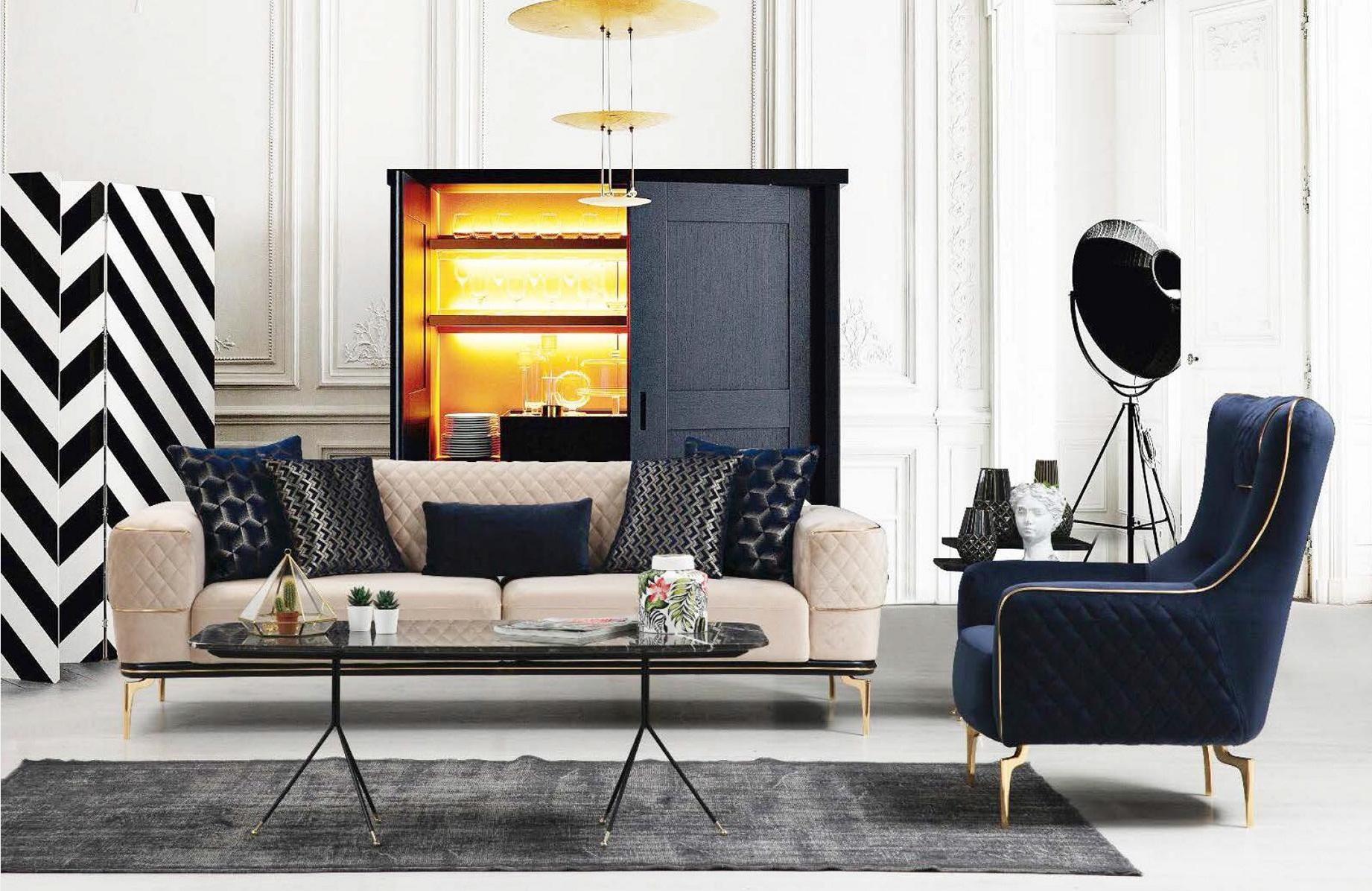 Sofa mat Fauteuil, Polstermiwwele, Wunnzëmmermiwwele