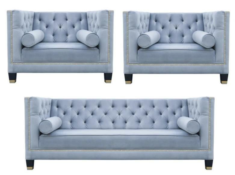 Blo Sofa-Suite Chesterfield Fauteuil Kreativ Miwwelen Textilstoff Wunnzëmmer Nei
