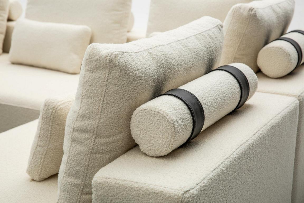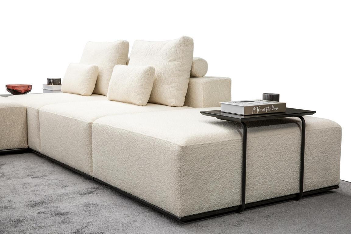 Moderne wäiss Sofagarnitur Ecksofa Wunnlandschaft Still 4-tëlleg Stoff Sofa