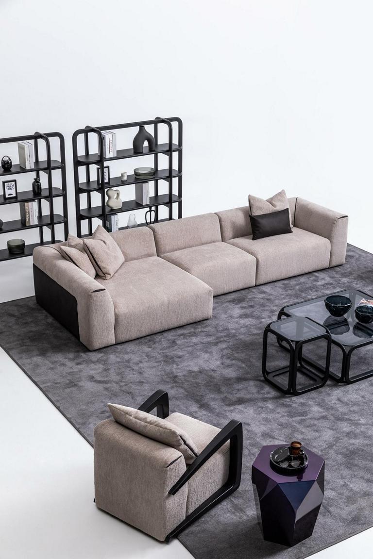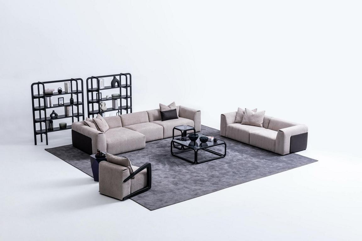 Setzgrupp Taupe Wunnzëmmer Wunnlandschaft Polstermöbel L-Form 3tlg