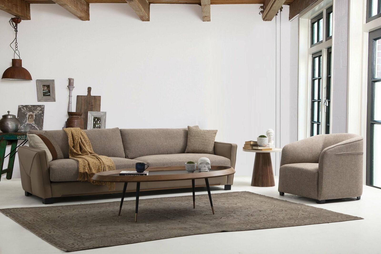 Déi stilvoll Sofagarnitur 431 Sëtzer Fotell Sofa Modern Stoff Beige Set 3tlg Sofas ass déi perfekt Ergänzung fir Ärt woonzëmmer. Mat engem abegrëffene 4-Sëtzer, 3-Sëtzer, an enger komfortabeler Fotell, bitt dëse Set genuch Plaz fir déi ganz Famill. D'Längt vum 4-Sëtzer ass ca. 260 cm, an déi vum 3-Sëtzer ass ca. 240 cm, wat et ideal mécht fir grouss Versammlungen an de Säll., alles aus haltbarem Holz an engem elegante Stoff, gëtt dës Garnitur net nëmmen en Touch vu Modernitéit, mee och vun Eleganz a Komfort an Ärem Raum. D'neutral beige Faarf, wéi ofgebilt, léisst sech liicht mat verschiddenen Dekorstiler kombinéieren.
