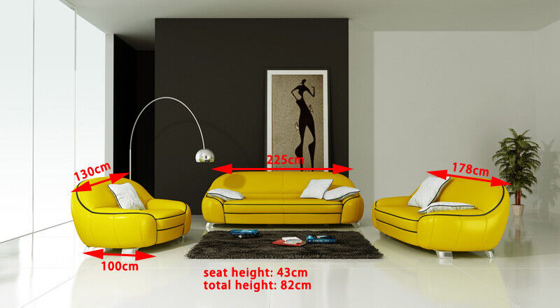Entdeckt d'Luxus vun eiser moderner Liederzofa Couch Sofagarnitur 3+2 Sëtzer Garnituren, déi eng harmonesch Mëschung aus Eleganz a Komfort bidd. Mat enger Wahl tëscht engem 2-Sëtzer an engem 3-Sëtzer Modell, déi respektiv Dimensioune vun ca. 178 x 100 x 82 cm an ca. 225 x 100 x 82 cm hunn, kënnt dir d'Garnitur perfekt un Är Wunnraumbedürfnisser upassen. D'Sëtzhéicht vun ca. 43 cm an d'Sëtzdéift vun ca. 59 cm garantéieren en héijen Sëtzkomfort. Mat enger Frai Faarfwahl, déi och aner Faarwen op Ufro zouloosst, passt dës Sofagarnitur an all Dekoratiounsstil. D'Premium Liederfaserstoffmaterial (70% Lieder / 30% Polyester) versprécht eng haltbar a qualitativ héichwäerteg Optioun, mat der Méiglechkeet d'Material fir en Zouschlag ze upgradéieren. Déi italienesch Rëndfleder, benotzt a bestëmmten Optionen, bidden onëmgänglech Raffinéiertheet a Wiederstandsfäegkeet.