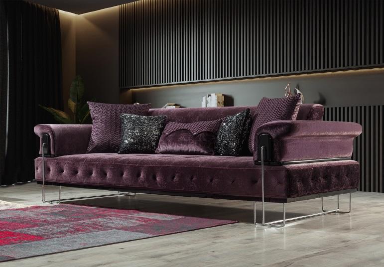 Lila Sofa Garnitur 3+1 Sëtz Chesterfield Wunnzëmmer Polster