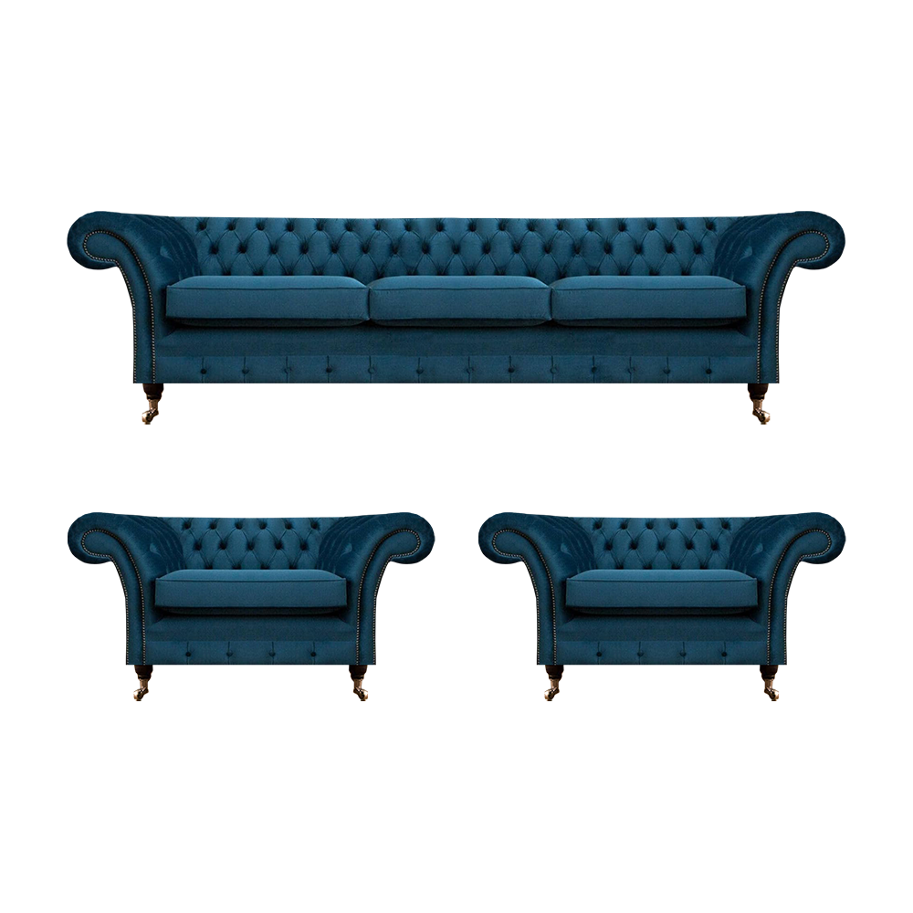 Luxus Blo Wunnzëmmer Set Chesterfield Ariichtung Polstermöbel Canapéë Stoff