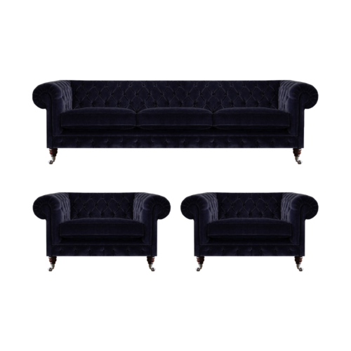 Luxus Canapé-Set Wunnzëmmer 3-Teile Set Ariichtung Gestofféiert Miwwelen Chesterfield