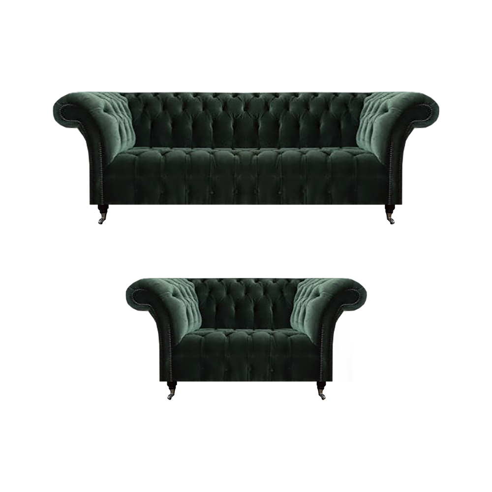 Entdeckt de Komfort an d'Eleganz vun eisem Luxus Canapéen Dräisëtzer mat Zwëschenzëtzer Polstermöbel Sofagarnitur Chesterfield. Des aussergewéinlech Polstermöbel kombinéieren héichwäertegt Design mat ausseruerdentlechem Komfort. Mat senge großzügegen Dimensiounen vun ca. 220 x 90 x 80 cm, bitt dëse Canapé genuch Plaz fir déi ganz Famill an ass en Highlight an all Wunnzëmmer. De präzise Veraarbechtungsprozess an déi raffinéiert Detailer, wéi wuel déi traditionell Knäpper oder déi luxuriéis Optioun vu Kristallsteng, maachen dëst Stéck zum perfekte Sammelpunkt fir stilvoll Heemassoziatiounen. Dank dem Federkär bidd den Canapé optimal Ënnerstëtzung a laangliewegen Komfort fir all Relax-Moment.