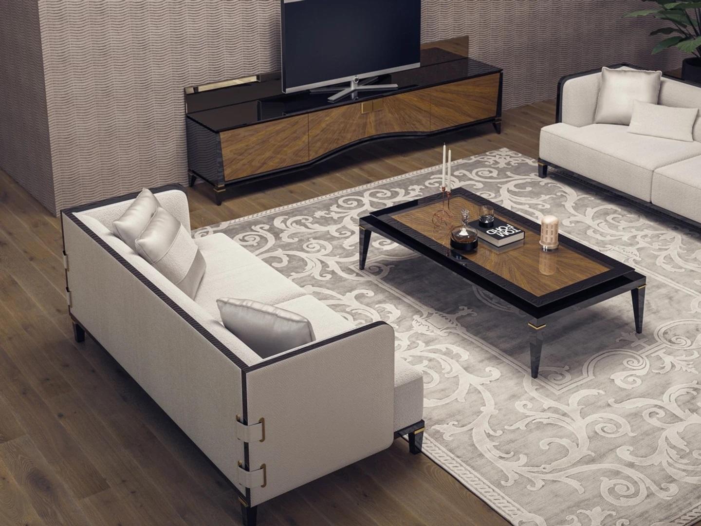 Entdeckt den ultimativen Komfort mat eisem 'Polstermöbel Sofa Couch Designer 2x Dräisëtzer Sofas Modern Wäiss Ariichtung'. Dëse Set enthält zwee stilvoll dräisëtzege Sofas, déi mat hire Moosse vun ungeféier 232 x 93 x 77 cm genuch Plaz bidden, fir Ären Living Room op en aneren Niveau vun Eleganz ze hiewen. Déi modern wäiss Ofschloss vermëscht sech perfekt mat verschiddenen Dekorstiiler, dobäi ënnersträicht d'Kombinatioun vun Holz mat Textil déi héichwäerteg Veraarbechtung. D'Sëtzhéicht vun ongeféier 42 cm an d'Sëtzdéift vun 54 cm bidden optimal Ënnerstëtzung, während den Design de Fokus op modernen Luxus setzt.