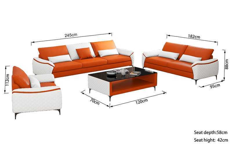 Dir hutt d'Méiglechkeet aus véier verschiddene Materialoptiounen ze wielen, jidd mat sengem eegene Luxusfaktor. Mat Premium Konschtlieder ouni Zousazkäschten, sou wéi Premium Liederfaserstoff a Echtleder, kënnt Dir den Niveau un Exzellenz an Eleganz erhéijen. Fir déi, déi traditionell Komfort sichen, ass den Premium Textilstoff eng super Optioun. Dës Sofa Komplett Set ass ideal fir stilvoll Wohnzimmer ze schmücken, egal ob Dir Familie an Frënn empfänkt oder einfach een Owend a Rou genéisse wëllt.