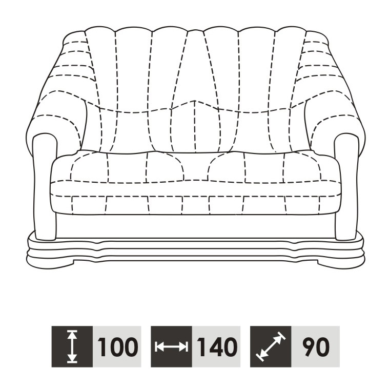 2 Sëtzer:   ca. 140 x 100 x 90 cm