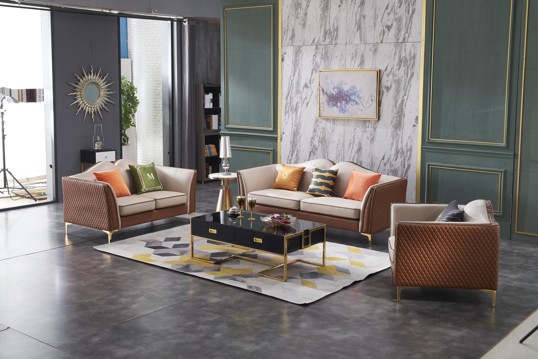 Dëse Couch Set ass perfekt fir verschidde Wunnraim an eegent sech ideal fir familiär Zesummekomme wéi och formell Zeenen. Seng faarwegläiche Premium Kënschtlech Lieder Kombinatioun erméiglecht et eng einfach Anpassung un all Raumdekor. Duerch d'Optioun vu verschiddene Faarwen op Ufro kann een d'Design Adaptatioun optimiséieren fir jiddwer Interieur. Ob Dir wonnerschéi Momenter mat Ärer Famill oder Frënn wëllt verbréngen oder einfach e Moment fir Iech selwer sichen, dëse Sofasaz kombinéiert den ultimativen Komfort mat stilvollen Design, fir all Äre Besoinen gerecht ze ginn.