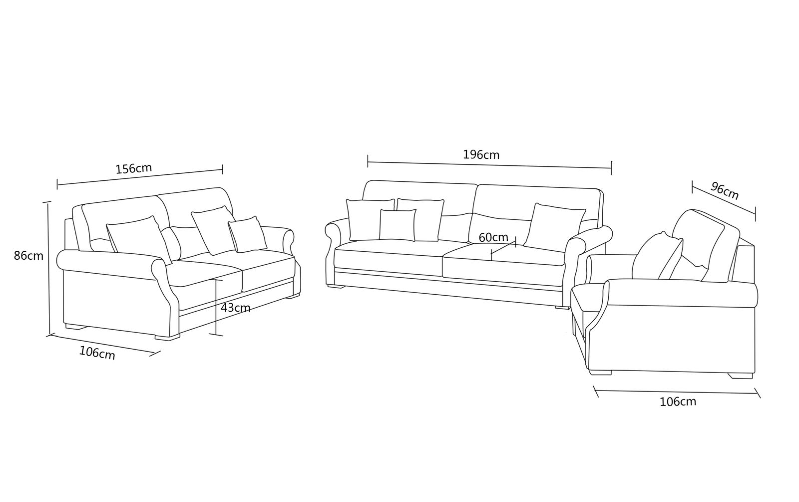 De 'Sëtzgrupp Modern 3+2+1 Sëtz Set Design Sofa Polster Couchen Couch' bréngt en Touch vu Modernitéit an Äert Heem mat sengem elegante Design a komfortable Setzungen. Dee Set enthält e 3-Sëtzer, 2-Sëtzer an e Sessel, mat de Gréissten vun jeeweils ca. 196 x 86 x 106 cm fir de 3-Sëtzer, ca. 156 x 86 x 106 cm fir de 2-Sëtzer an ca. 96 x 86 x 106 cm fir de Sessel. Dës Miwwelen si mat engem héichwäertege Premium Liederfaserstoff (70% Lieder / 30% Polyester) iwwerzunn, wat e stilvollen an dauerhafte Look bitt. Faarfwahl ass fräi, fir datt Dir Ären individuellen Stil ausdrécke kënnt. Den Innengestell ass aus echtem Holz gemaach, wat fir Stabilitéit an Langlebegkeet steet.